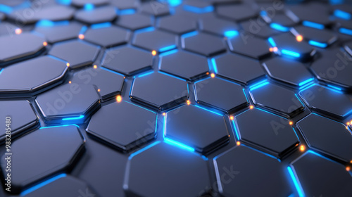 Networking-themed background featuring light gray hexagons connected by glowing blue lines, symbolizing efficient and seamless digital communication.