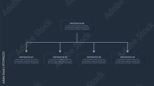Neumorphic flowchart dark iinfographic. Creative concept for infographic with 5 steps or processes.
