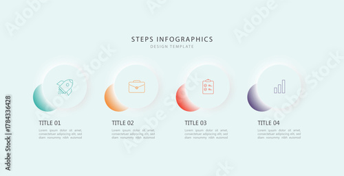 Neumorphism design infographic 4 step or process timeline, vector illustration.
