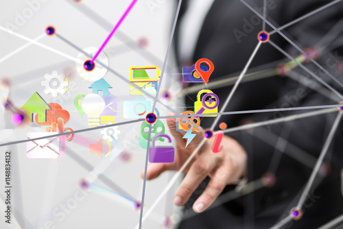Neural network 3D illustration. Big data and cybersecurity - 3d
