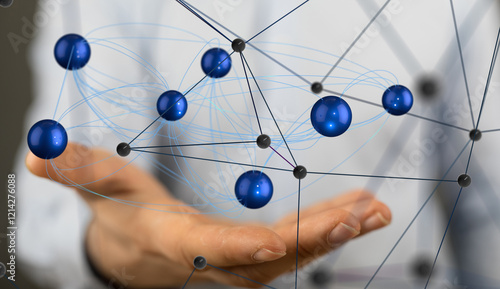 Neural network 3D illustration. Big data and cybersecurity