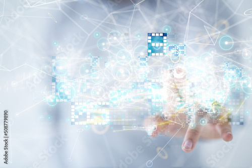 Neural network 3D illustration. Big data and cybersecurity