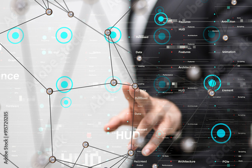 Neural network 3D illustration. Big data and cybersecurity