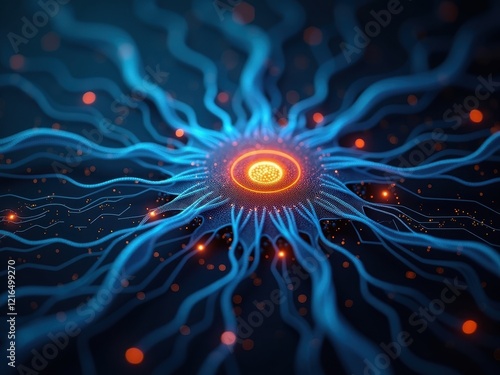 Neuromorphic computing representation showcasing a network of interconnected neurons and their dynamic activity patterns using colorful visuals