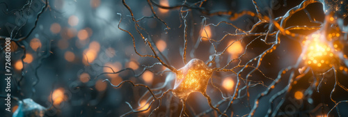 neuronal nerve cell with shining lights, generative AI