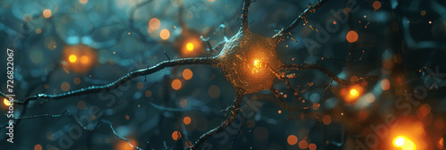 neuronal nerve cell with shining lights, generative AI