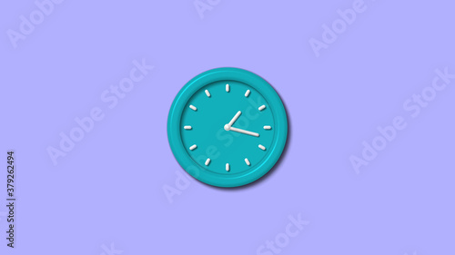 New cyan color 3d wall clock on blue light background,clock