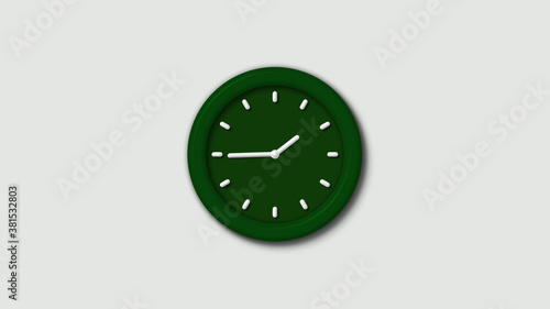 New green dark 3d wall clock isolated on white background