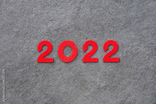 Next year numbers 2022 cut out of red felt on dark gray stone surface. New Year concept. Review of the upcoming future year.