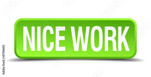 nice work green 3d realistic square isolated button