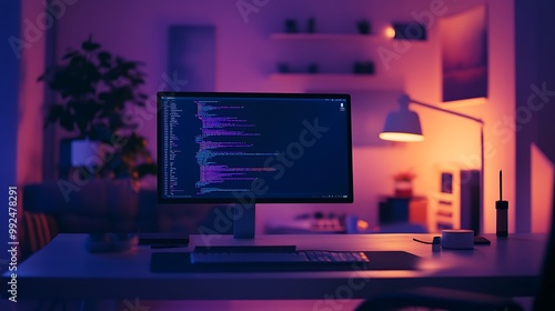 Nighttime Coding Setup with Colorful Code Display
