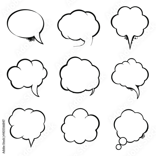 Nine Unique Hand Drawn Comic Speech Bubbles