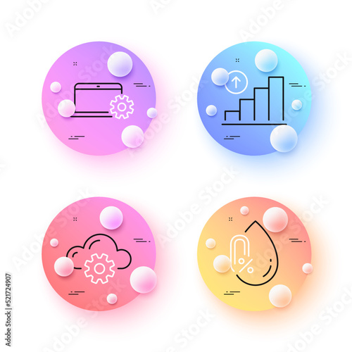 Notebook service, No alcohol and Cloud computing minimal line icons. 3d spheres or balls buttons. Graph chart icons. For web, application, printing. Vector