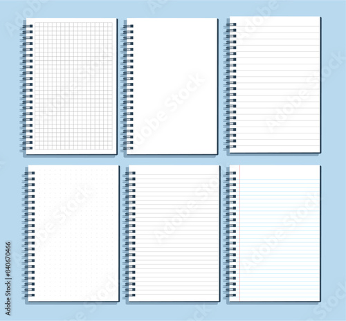 notebooks diffrent patterns rulled grid dotted flat style blue background