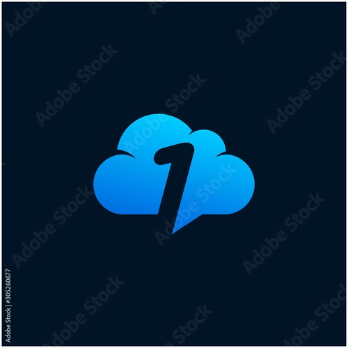 Number 1 negative space in Sky Cloud, Technology Hosting Domain BlockChain Server Logo Design - Vector