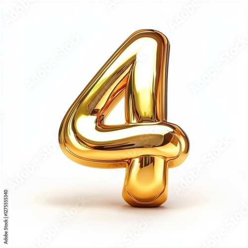 Number 4 made of polished gold with smooth reflections isolated on a clean white background
