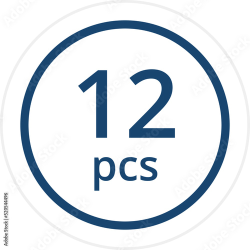 number of pieces in a package pieces pcs decal stickers. Vector illustration isolated on white.