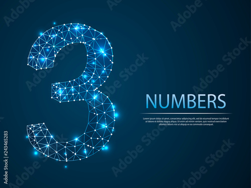 number three low poly abstract illustration consisting of points, lines, and shapes in the form of planets, stars and the universe. Vector digit 3 wireframe concept.