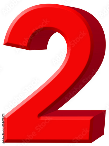 Numeral 2, two, isolated on white background, 3d render