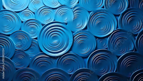 Numerous blue concentric circles overlap, creating a mesmerizing visual texture.