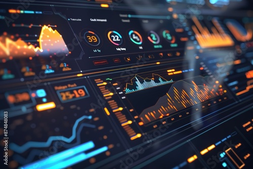 Numerous charts, screens and graphics background interface '3D rendering'