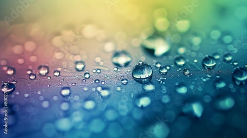 numerous raindrops on a surface with a colorful gradient generative ai