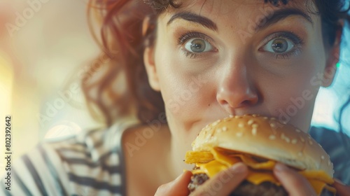 obesity problem, woman eating hamburger