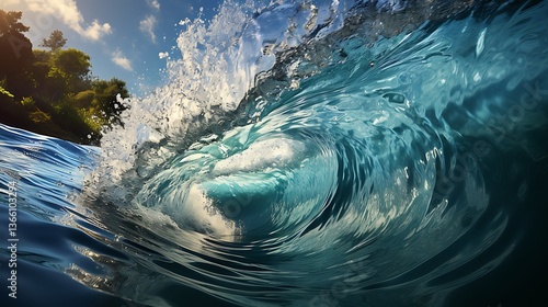 Ocean Wave Majesty: Underwater Perspective of a Powerful Breaking Wave