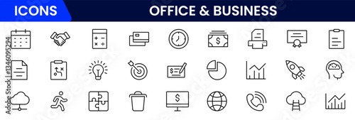 Office and Business line icons collection. Big UI icon set in a flat design. Thin outline icons pack. Vector illustration
