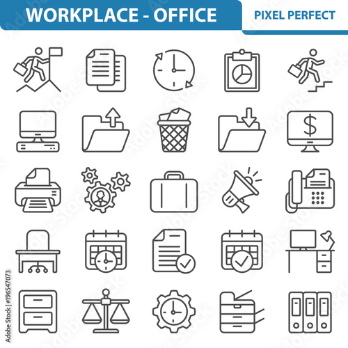 Office and Workplace Icons, Professional, pixel perfect icons depicting various office, job, career and workplace concepts. EPS 8 format.