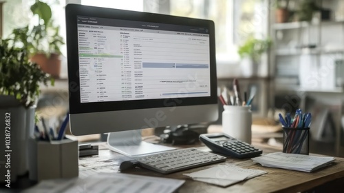 Office Desk with Computer and Documents