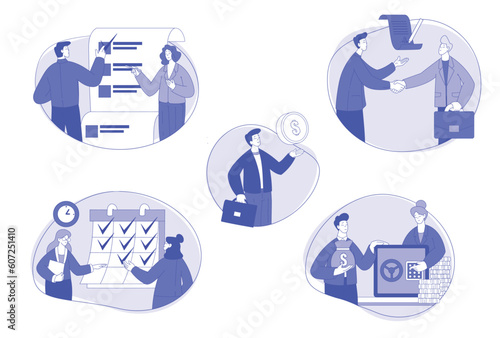 Office Staff with Man and Woman Character Working Together Vector Set
