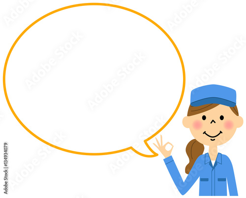 OKサインをする作業着の女性 ふきだし