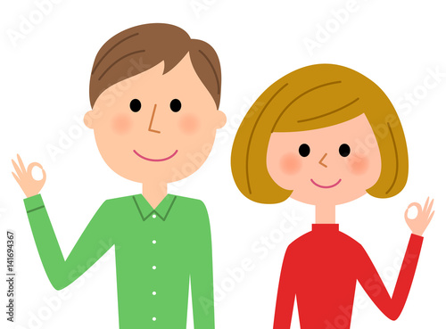 若いカップル OKサイン