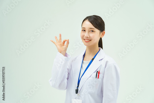 OKサインをする白衣の女性