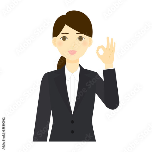 OKサインをするスーツの女性