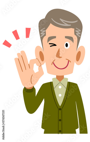 OKのサインを示すシニアの男性の上半身