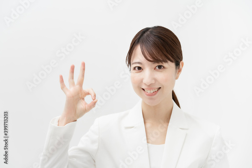 「OKサイン」をするビジネスウーマン