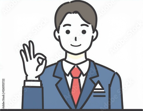 男性会社員が指でOKサインをするジェスチャーのイラスト。AIで生成