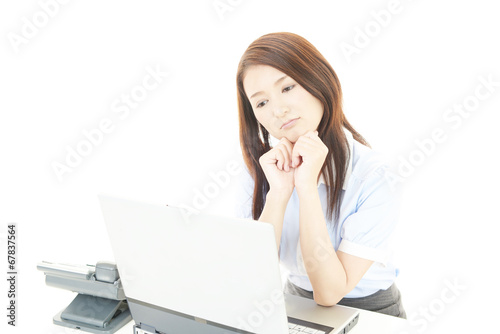 woman, woman, personal computer, personal computer, earphones, call, fatigue, overwork, overtime, beauty, lovely, people, japanese, health, cosmetic, business, ol, model, face, hair, mouth, lip, sweet, pretty, young, girl, healthful, office, career woman, unrest, dislike, clean, beauty, white background, copy space, expression, clean, dispatch, pose, work, corporation, corporate, staff, office worker