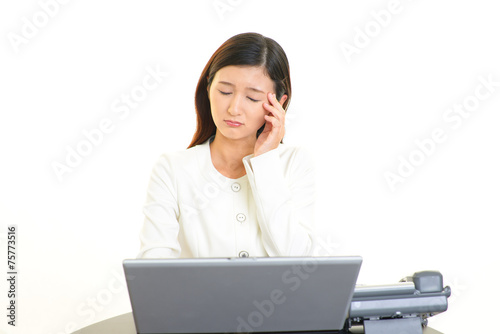 call, notebook, personal computer, cephalalgia, fatigue, overwork, woman, woman, beauty, health, cosmetic, people, lovely, business, ol, model, face, hair, mouth, sweet, pretty, young, girl, japanese, office, career woman, clean, beauty, white background, copy space, overtime, flop, inability, apprehension, blues, expression, work, corporation, corporate, staff, office worker, pain, suffer