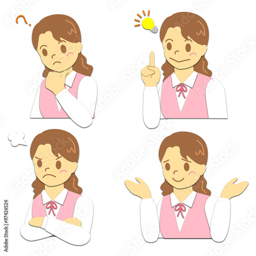 OL 表情 考える ひらめく 怒る お手上げ ピンク