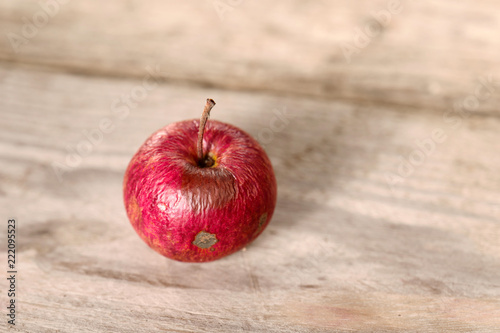 Old apple on wooden background