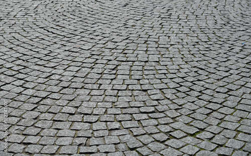 Old cobblestone pavement close-up.