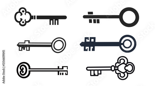 Old Key Icon Vector Graphic Black Line Design