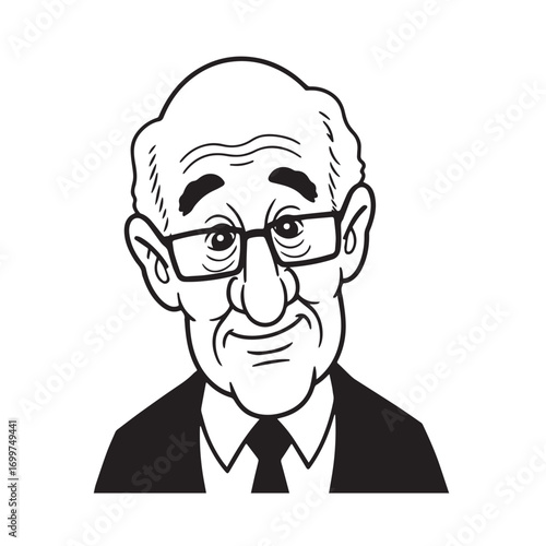 Old man with formal suit black and white vector illustration for classic portrait artwork design
