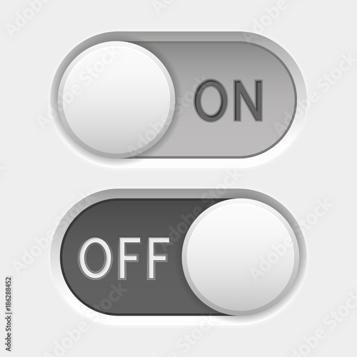 On and Off icons. Toggle switch interface buttons. Gray elements