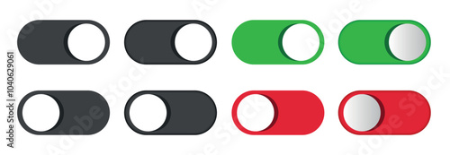 On and Off Toggle Switch Buttons in transparent background. Flat and 3D button set