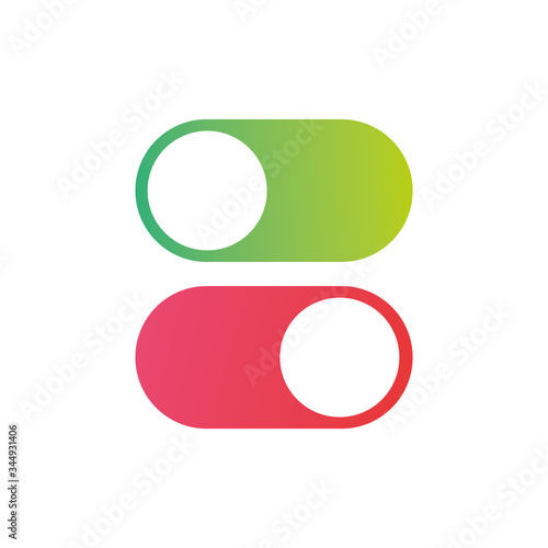 On and Off toggle switch buttons. Material design switch buttons set. Vector illustration.