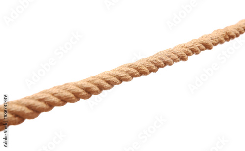 One brown braided rope isolated on white